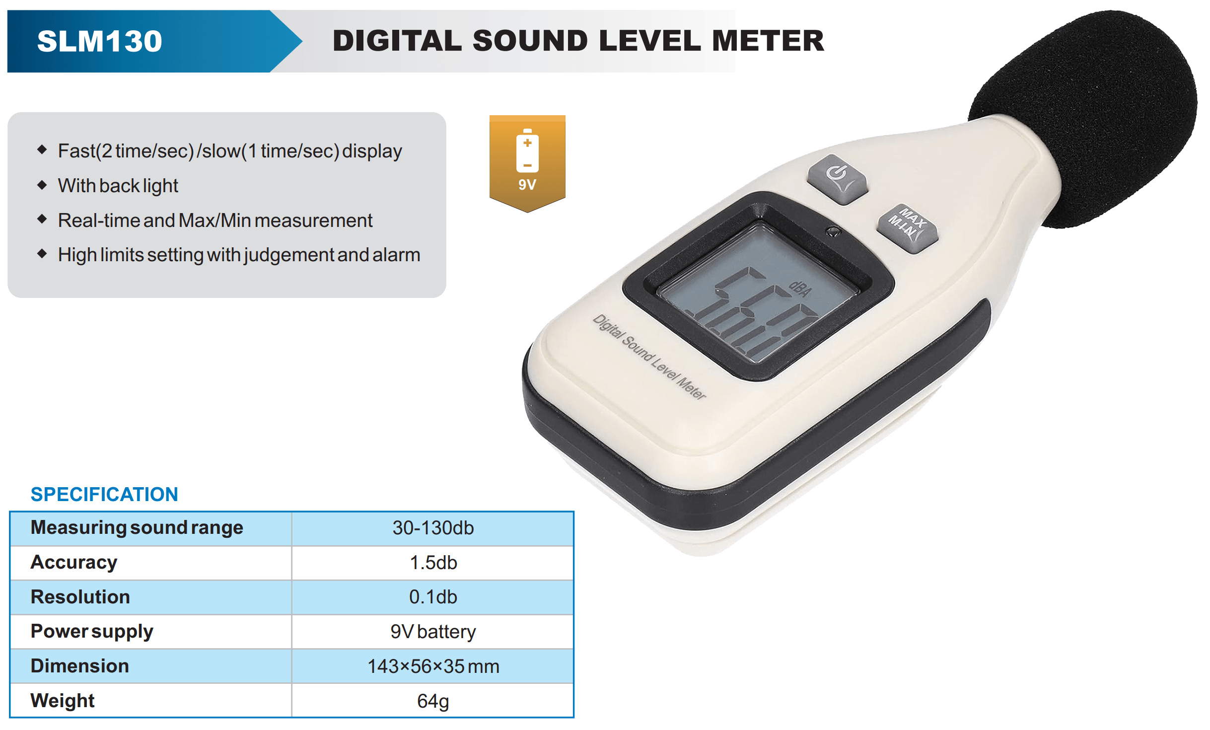 SLM130 Digital Sound Level Meter (measuring sound range 30 - 130dB)