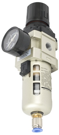 A filter and regulator can be configured into one unit, called an FR unit. This unit can be used with air tools/equipment that don't need lubrication.