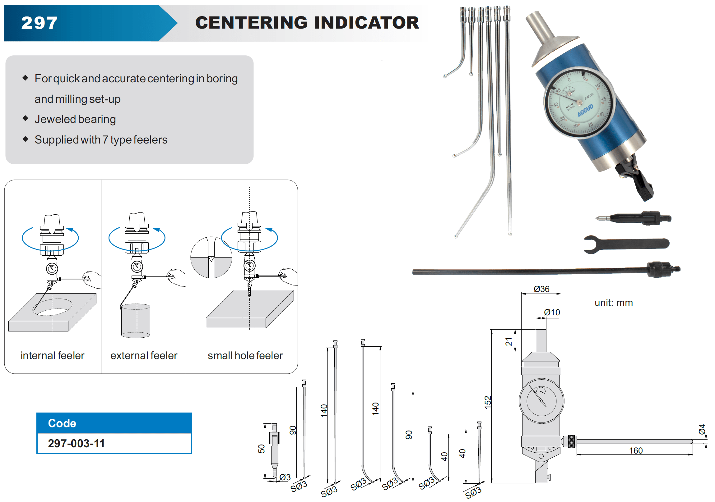 - For quick and accurate centering in boring and milling set-up
