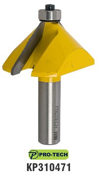 This bevel cutter is a 2 flute, carbide tipped router bit with totally enclosed ball bearing guide. It is ideal for bevelling and decorative edges. This router bit is also used for producing a 45° edge for mitres, especially where extreme accuracy is required. A great product for making boxes.