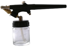 The airbrush is a small, air-operated tool that can be used to spray various media. The media can vary from paint, ink or dye by a process of atomization. Where the media is transformed into a fine controllable mist by mixing the media with compressed air.